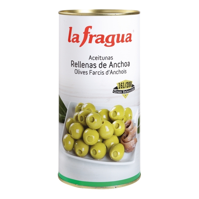Ingredientes: agua, aceitunas verdes manzanilla, pasta de anchoa (6%) (agua, anchoa y espesante: E-401), sal, potenciadores del sabor: E-621 y E-635, acidulantes: E-330 y E-270 y antioxidante: E-300. Ocasionalmente puede contener fragmentos de hueso.