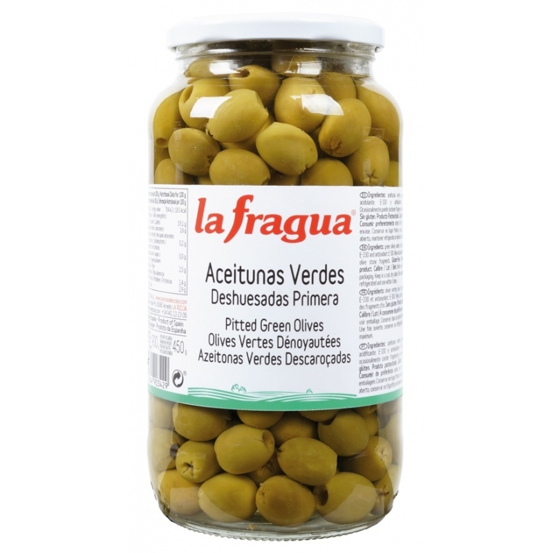Ingredientes: aceitunas verdes manzanilla, agua, sal, acidulantes: E-330 y E-270 y antioxidante: E-300.