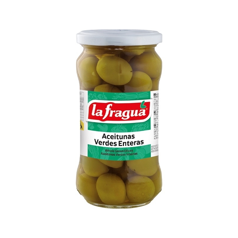 Ingredientes: aceitunas verdes manzanilla, agua, sal, acidulantes: E-330 y E-270 y antioxidante: E-300.