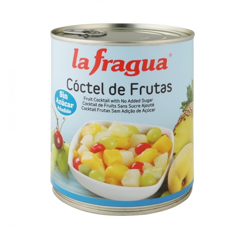 Ingredientes: melocotón (20-50%), pera (20-45%), piña (6%), uva (2,5%), cereza (2,5%), agua, acidulante: E-330, antioxidante: E-300, edulcorante: E-955 y colorante: E-127.