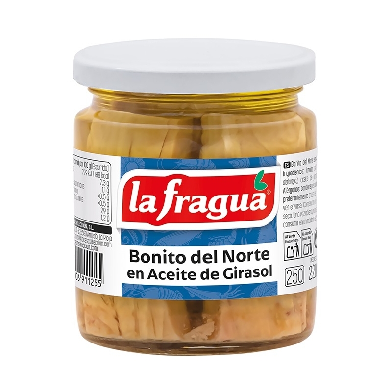 Ingredientes: bonito del norte (Thunnus alalunga), aceite de girasol (34%) y sal.