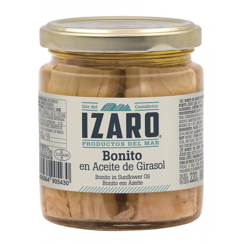 Ingredientes: bonito (Sarda spp.), aceite de girasol (34%) y sal.