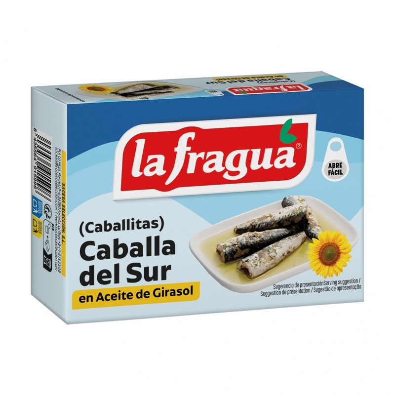 Ingredientes: caballa (Scomber colias) (70%) (pescado), aceite de girasol (29%) y sal (1%).