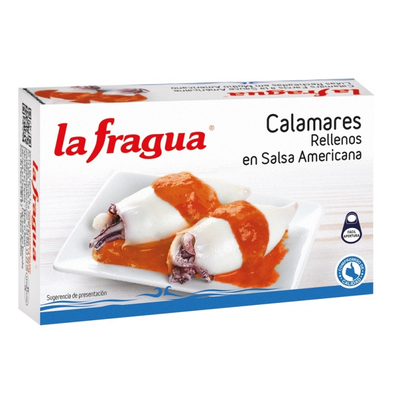 Ingredientes: calamares (Loligo spp) (53%), aceite de girasol, calamar (Dosidicus spp), cebolla, arroz, tomate, sal y especias.