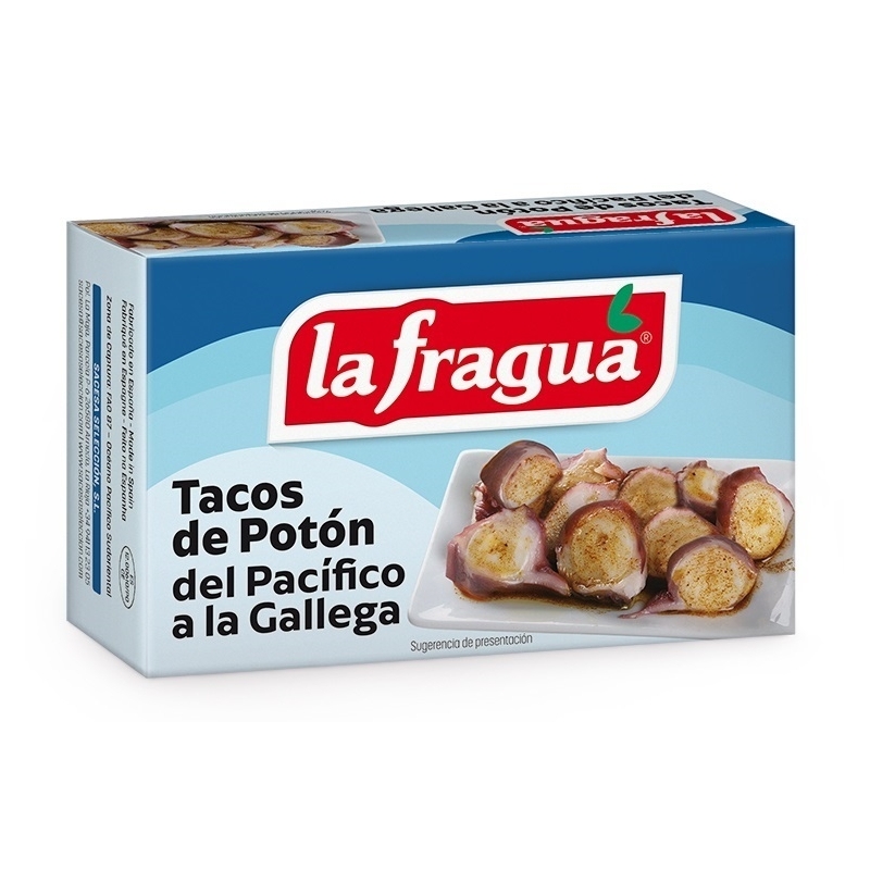 • Ingredientes: tacos de potón del pacífico (Dosidicus spp) (60%), aceite de girasol, tomate, cebolla, sal y especias.