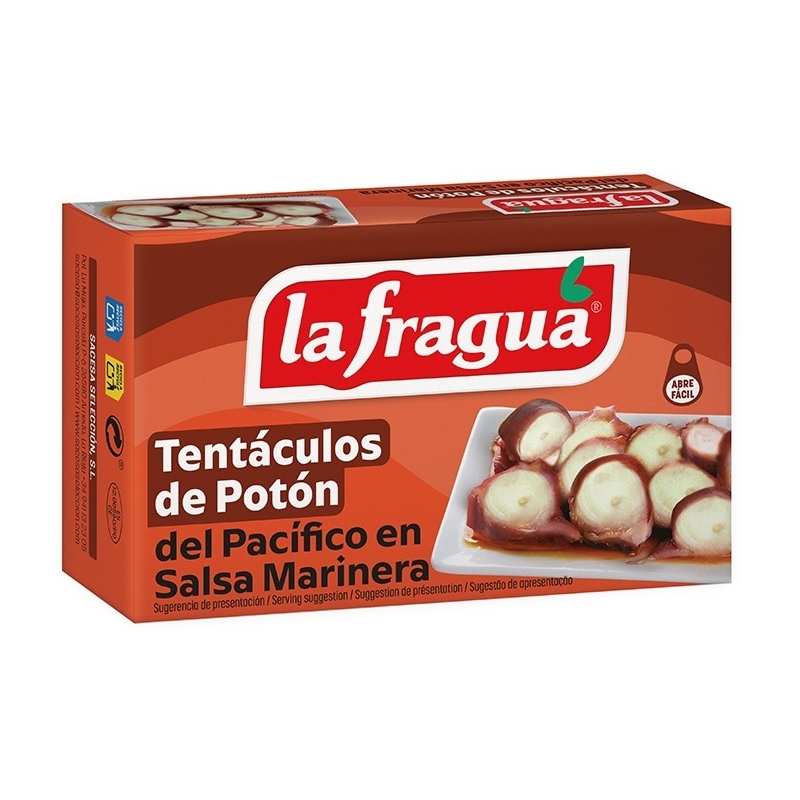 Ingredientes: tacos de potón del pacífico (Dosidicus spp) (60%), aceite de girasol, tomate, cebolla, sal y especias.