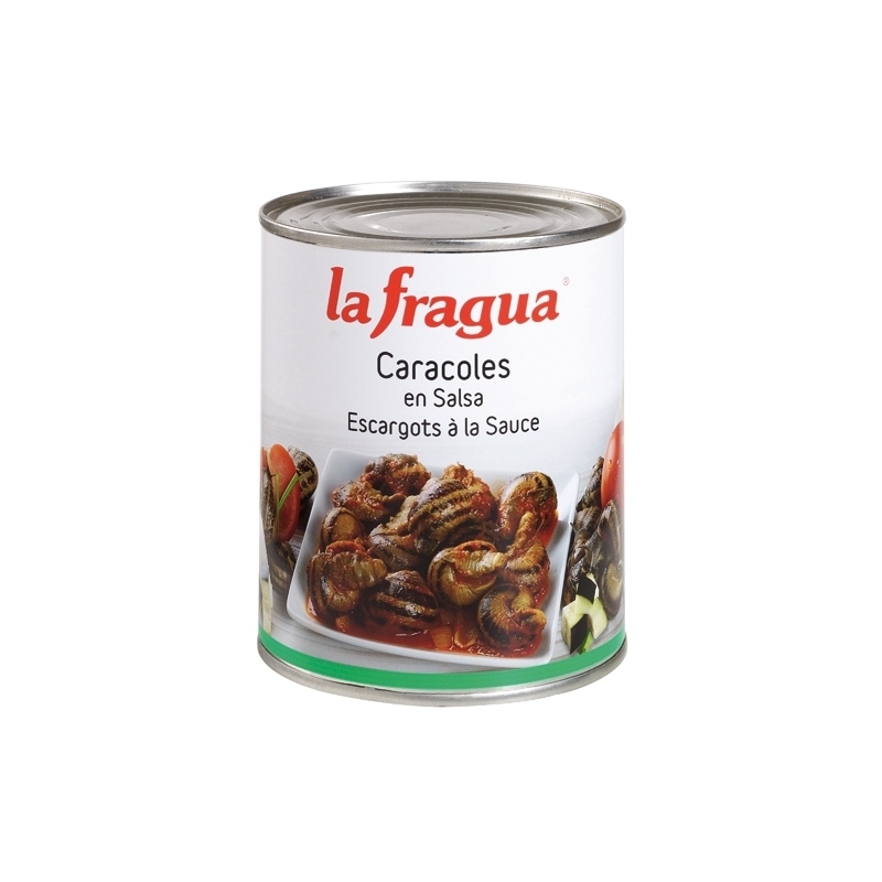 Ingredientes: caracoles (45%), pisto (55%) (tomate, cebolla, berenjena, calabacín, pimiento verde y rojo, aceite de girasol, azúcar y espesante: almidón de maíz) y sal.