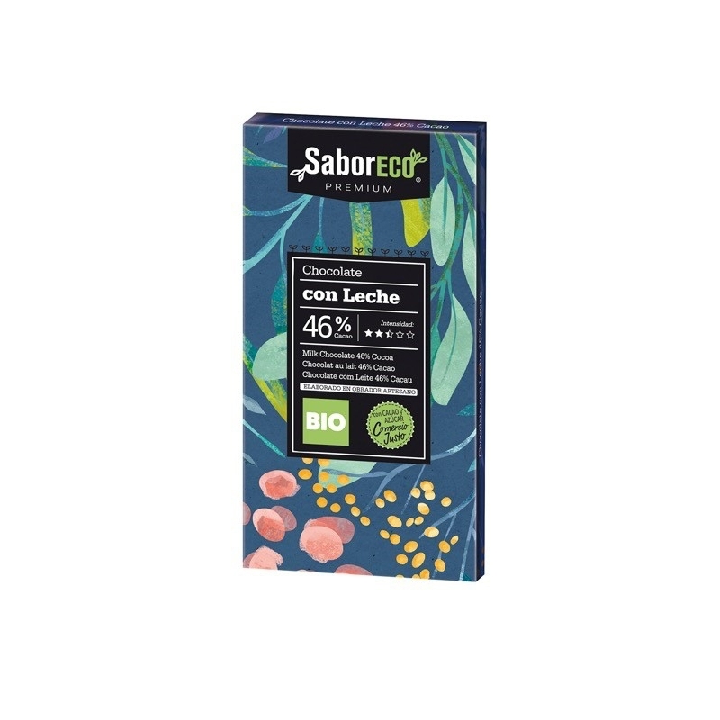 Ingredientes: azúcar de caña*, manteca de cacao*, leche entera en polvo* (9%), cacao* (46% cacao mínimo) y emulgente: lecitina de soja*. *De producción ecológica.