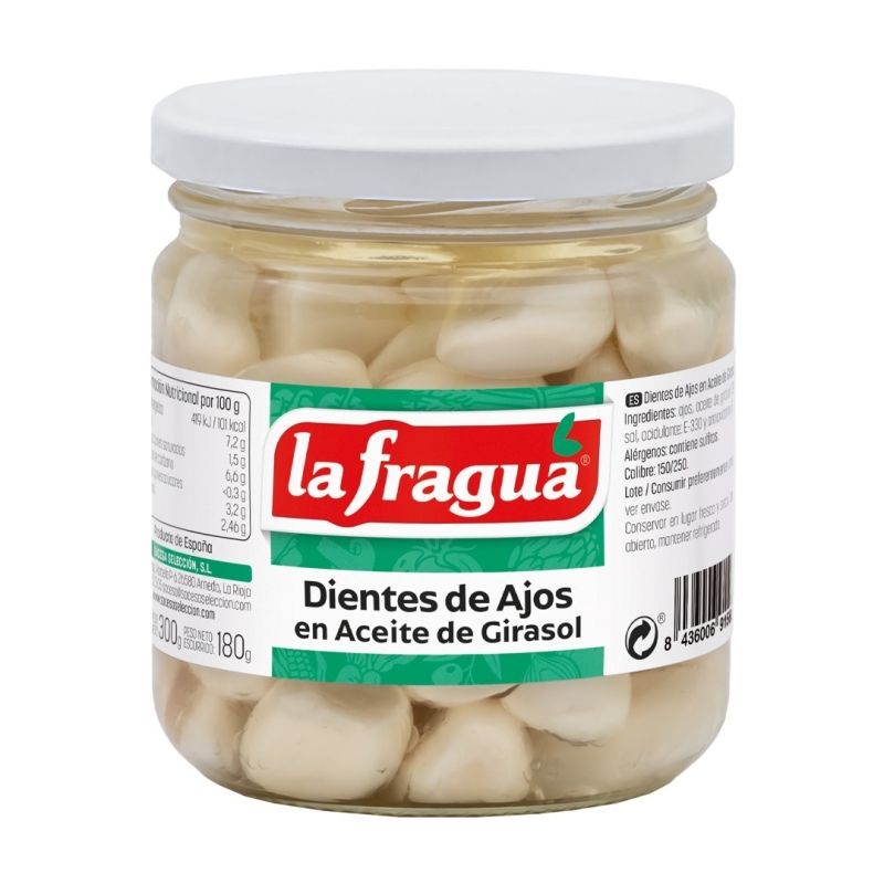 Ingredientes: ajos, aceite de girasol (37%), sal y acidulantes: E-330 y E-260.