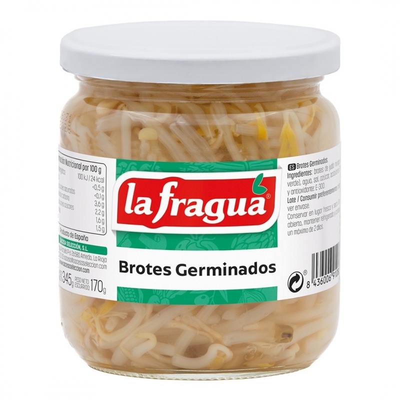 Ingredientes: brote de judía mungo (soja verde), agua, sal, acidulante: E-330 y antioxidante: E-300.