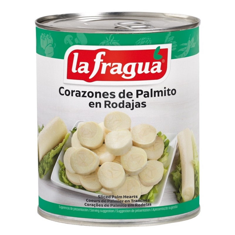 Ingredientes: palmito en rodajas (62,5%) agua, sal y acidulante: E-330.