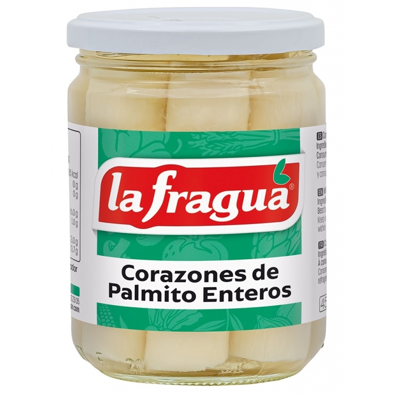 Ingredientes: palmito entero, agua, sal y acidulante: E-330.