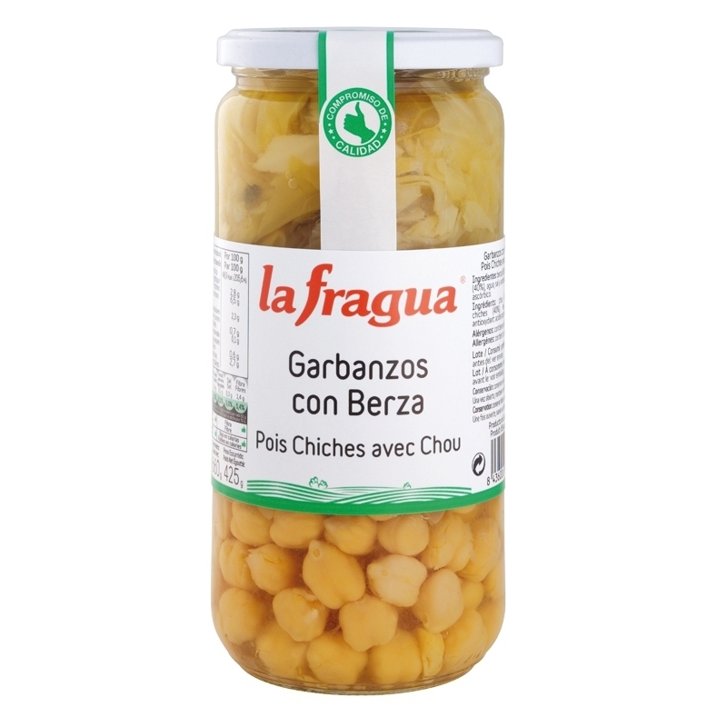 Ingredientes: garbanzos (34,7%), berza (28,8%), agua, sal, acidulante: E-330 y antioxidante: E-385.