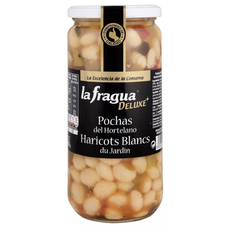 Ingredientes: alubias blancas (59%), agua, pimiento verde, calabacín, tomate, cebolla, ajo, sal, aceite de oliva, antioxidante: E-223 y secuestrante: E-385.