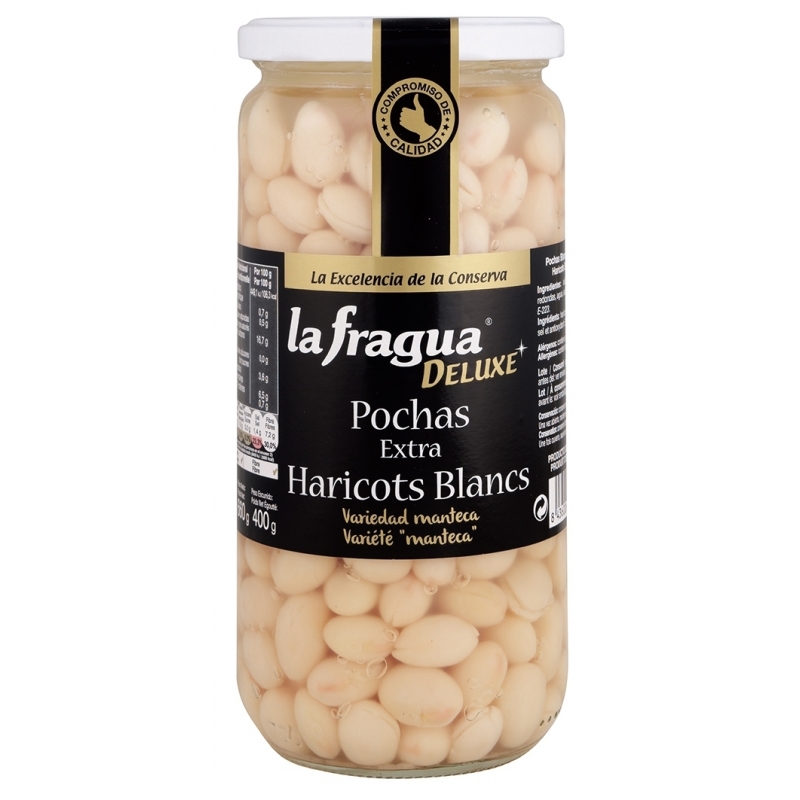 Ingredientes: alubias blancas redondas, agua, sal y antioxidante: E-223.