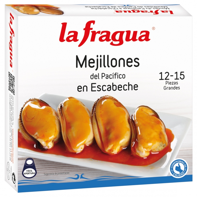 Ingredientes: mejillones de Nueva Zelanda (Perna spp.) (moluscos), aceite refinado de girasol, vinagre de vino, aroma natural y sal.