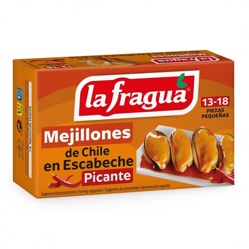 Ingredientes: mejillones (Mytilus galloprovincialis), aceite de girasol, vinagre, especias, aroma natural y sal.