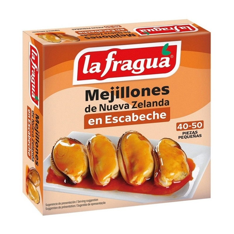Ingredientes: mejillones de Chile (Mytilus chilensis) y escabeche (aceite de girasol, vinagre de vino, agua, aromas naturales y sal).