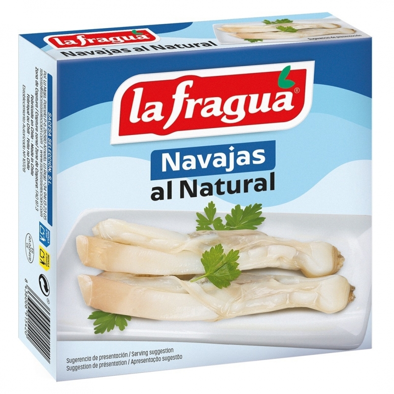 Ingredientes: navaja macha (Ensis macha), agua, sal, acidulantes: E-331 y E-330 y antioxidante: E-385.