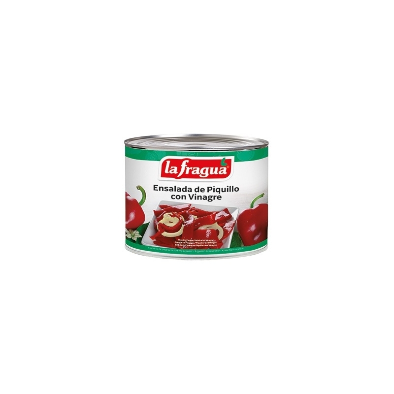 Ingredientes: pimiento piquillo, cebolla, agua, azúcar, sal, vinagre de alcohol y acidulante: E-330.