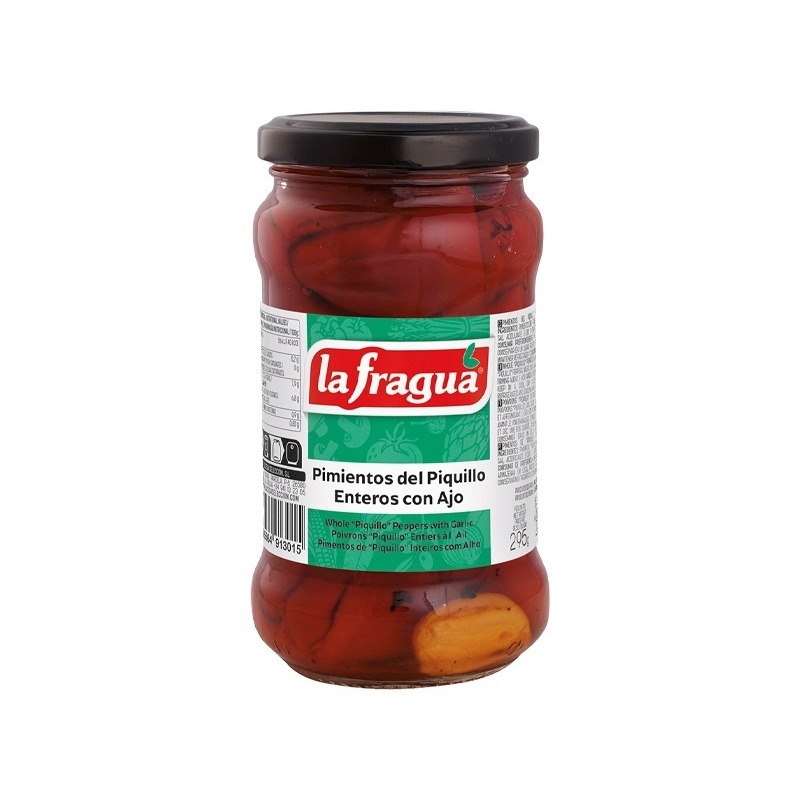 Ingredientes: pimientos del piquillo, agua, azúcar, ajo, sal, acidulante: E-330 y endurecedor: E-509.