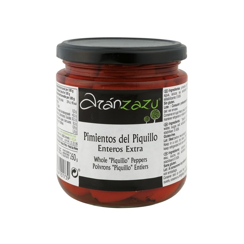 Ingredientes: pimientos del piquillo, agua, azúcar, sal, acidulante: E-330 y estabilizante: E-509.