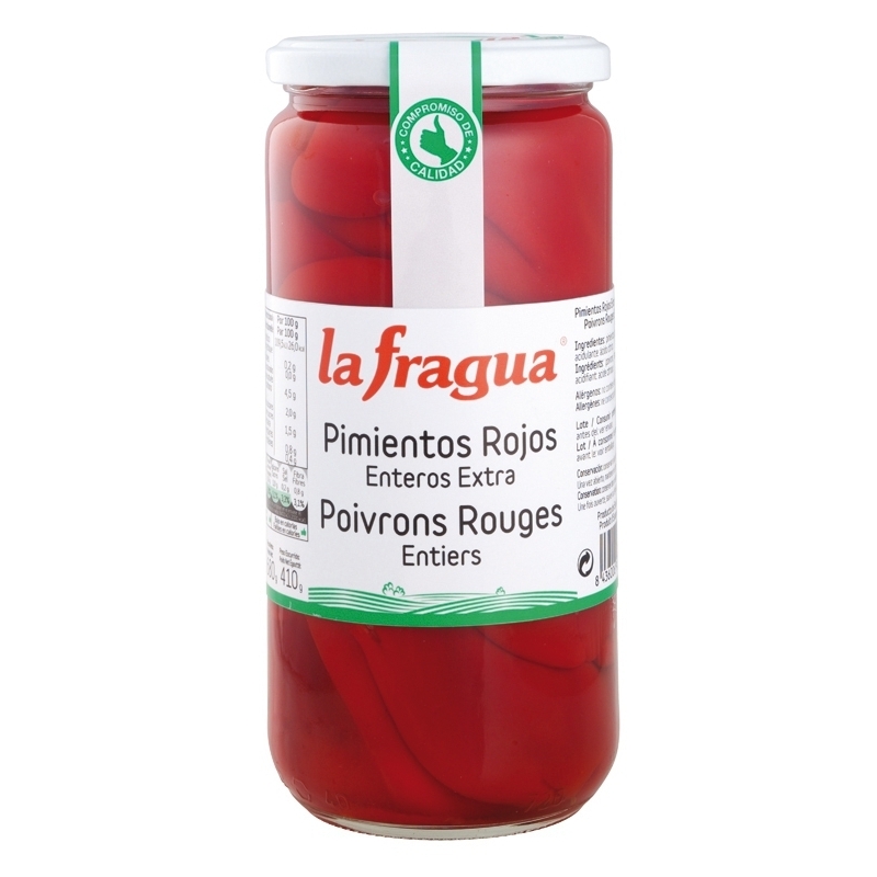 Ingredientes: pimientos rojos, agua, sal, acidulante: E-330 y endurecedor: E-509.