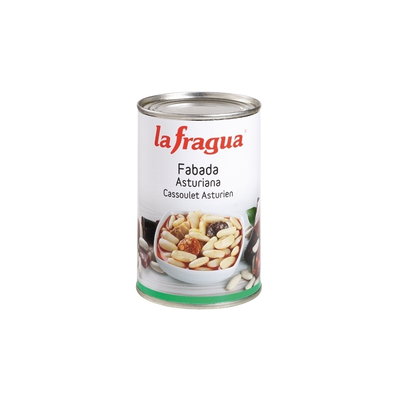 Ingredientes: alubias blancas (50%), agua, panceta salada (4%) (panceta de cerdo, sal, especias, dextrosa, antioxidante: E-301), chorizo (3%) (carne de cerdo, pimentón, sal, ajo, azúcares, proteína de cerdo, fibra vegetal, aroma, especias y envoltura artificial (colágeno)), morcilla (3%) (tocino de cerdo, sangre de cerdo, cebolla, pimentón, sal, harina de arroz, especias y envolutura artifical (colágeno)), almidón de maíz modificado, sal y especias.