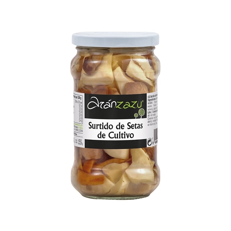 Ingredientes: setas en proporción variable: (Pleurotus ostreatus, Lentinula edodes, Pholita nameko y Volvariella volvacea), agua, sal y acidulante: E-330.