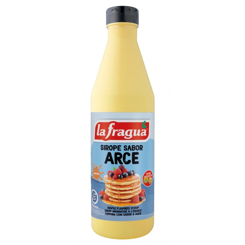 Ingredientes: jarabe de glucosa, azúcar, agua, colorante: E-150a, aroma de arce y conservador: E-202.