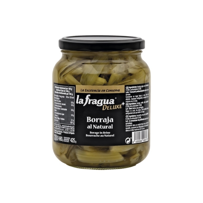 Ingredientes: borraja, agua, sal, acidulante: E-330 y antioxidante: E-300.