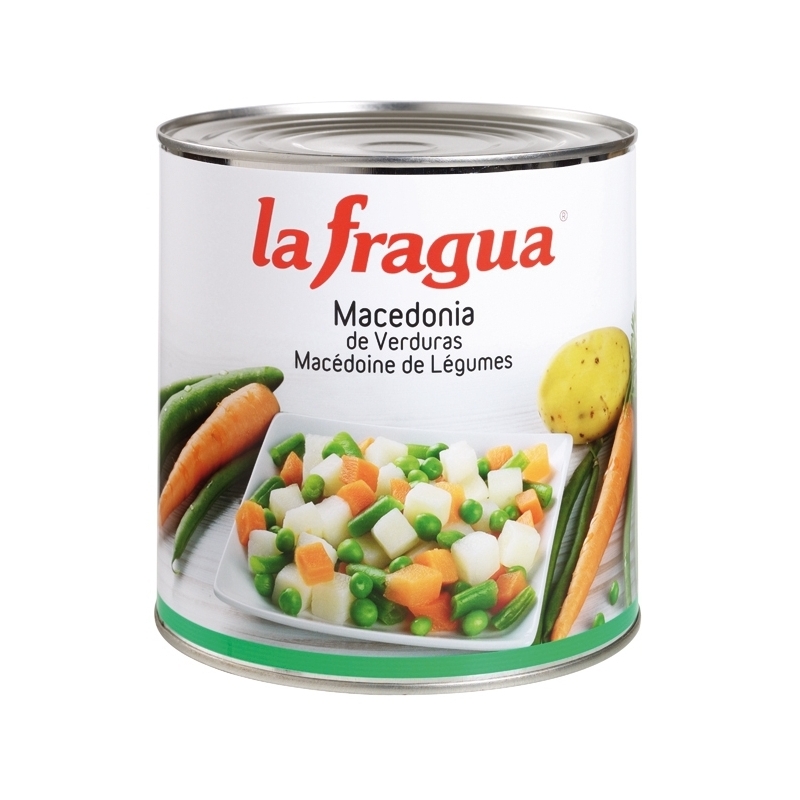Ingredientes: mezcla de hortalizas en proporción variable: patata, zanahoria, guisantes y judía verde, agua y sal.