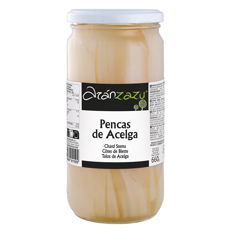 Ingredientes: pencas de acelga, agua, sal, acidulante: E-330 y antioxidante: E-300.